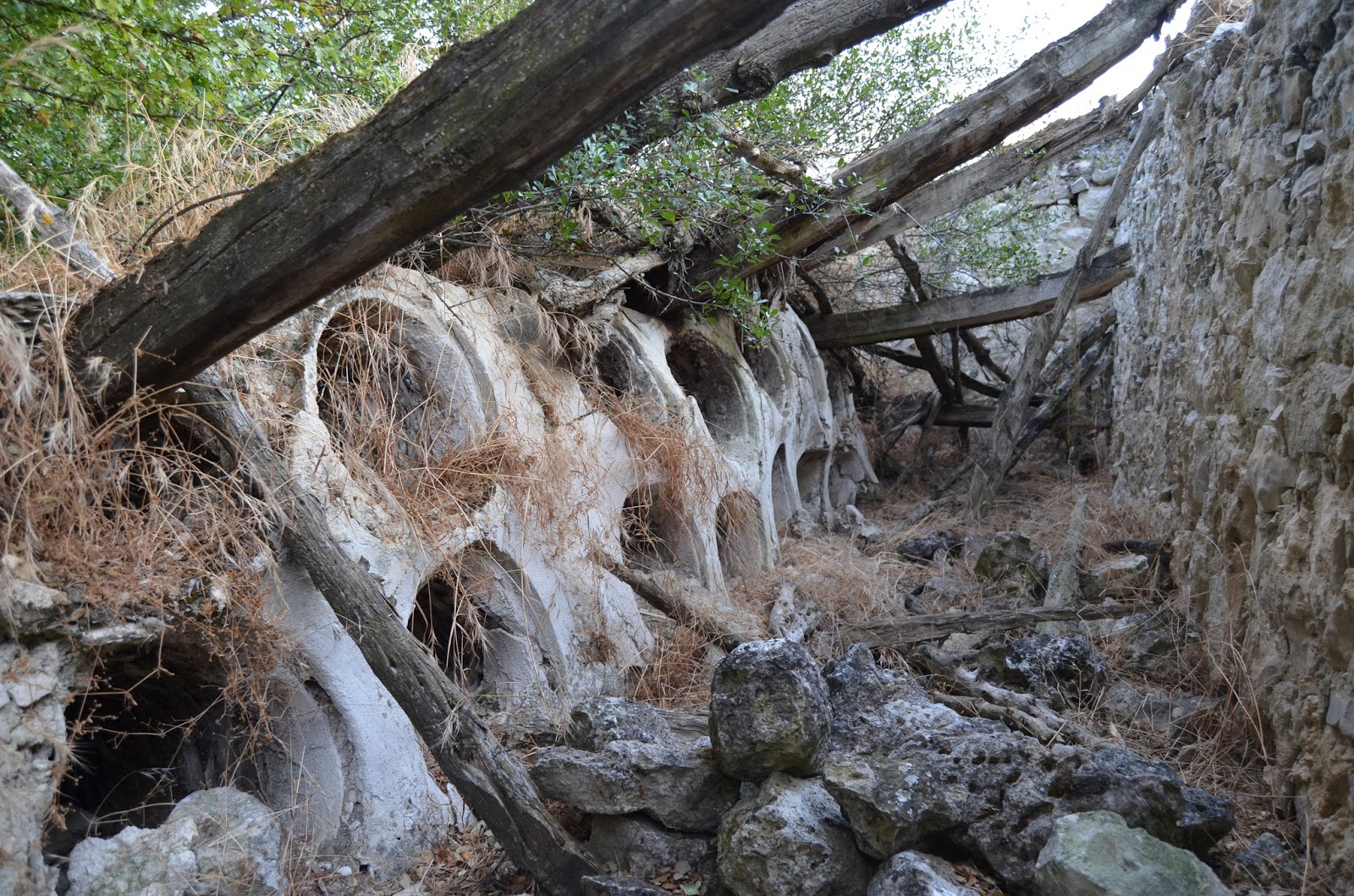 Restos de colmenar en la ladera (Villaconancio). A la izquierda se pueden apreciar unos jerbos.